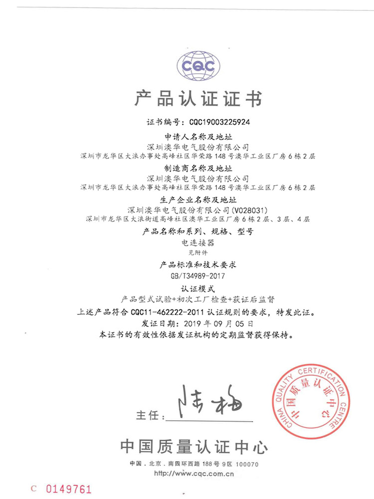 當產品具備CQC認證的時候,意味著它的各方面性能都是經過驗證可靠的,將擁有更廣的適用范圍。澳華股份多種組裝及帶線產品已取得CQC認證,歡迎新老客戶咨詢訂購。