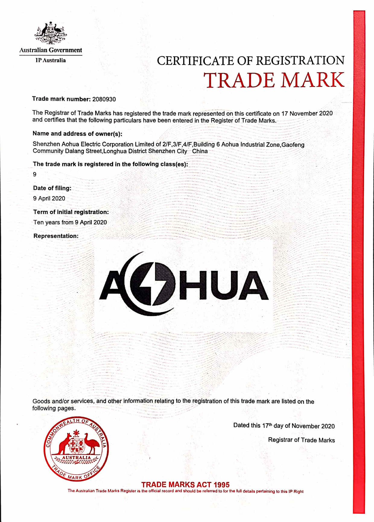 澳大利亞商標(biāo)注冊(cè)證書(shū)